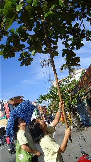 立刻跟早餐店老闆娘借了一支竹子把「橄欖」打下來給我們一人一個